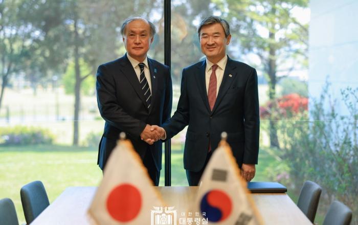 조태용 국가안보실장은 3일 아키바 다케오 일본 국가안전보장국장과 한일 안보실장 회담 및 경제안보대화 출범회의를 가졌다고 대통령실이 전했다. 한일 안보실장 협의에서 양측은 3월 윤석열 대통령의 방일 이후 조성된 한일관계의 본격적 발전 흐름을 평가하고, 5월7~8일로 예정