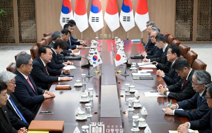 윤석열 대통령은 7일 “한일 간의 협력과 공조는 양국의 공동이익은 물론이거니와 세계 평화와 번영을 위해서도 꼭 필요하다”고 강조했다. 윤 대통령은 이날 오후 서울 용산 대통령실 청사에서 1박2일 일정으로 한국을 방문한 기시다 후미오 일본 총리와 가진 확대 정상회담 모두