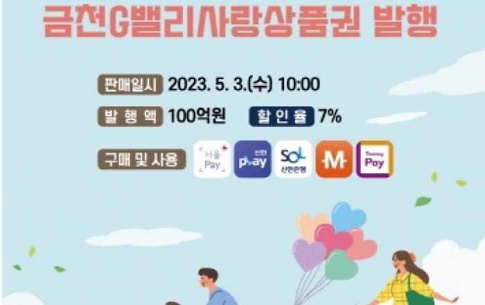 서울 금천구는 5월 3일 가정의달을 맞아 지역 내 소비 촉진과 소상공인 매출 증대를 위해 금천G밸리사랑상품권을 발행한다. 금천G밸리사랑상품권은 서울사랑상품권의 하나로, 금천구 내에서만 사용할 수 있는 모바일형 상품권이다. 2020년부터 발행하기 시작해 명절 등