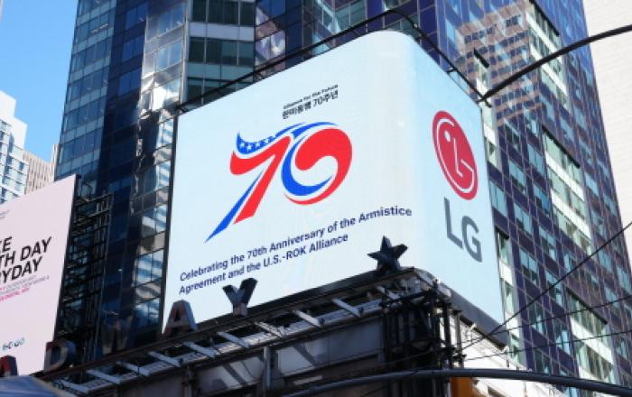 LG가 현지 시각 20일부터 2주간 뉴욕 타임스스퀘어에서 한미 동맹 및 정전협정 70주년을 기념해 한국전쟁 참전용사의 희생과 공헌에 대한 감사 메시지를 담은 영상을 상영한다. 국가보훈처가 제작한 총 30초 분량의 영상에는 12명의 한국전쟁 참전용사가 차례로 소개된다
