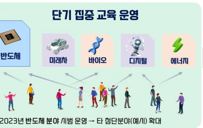 다양한 배경의 대학생들이 1년 이내 집중교육을 받으면 반도체기업의 취업 길이 열리게 된다. 교육부와 한국산업기술진흥원은 ‘첨단산업 인재양성 부트캠프’ 기본계획을 발표하고, 참여대학 모집을 공고한다고 13일 밝혔다. 이에 올해 대학 5개교와 전문대학 5개교 등