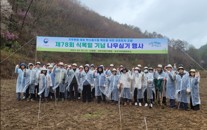 서부지방산림청은 4월 5일 관내 진안군 용담댐 일원 유휴토지에 제78회 식목일이자 국토녹화 50주년을 기념하여 기후변화에 대응한 나무심기 행사를 추진하였다. 이번 행사는 임상섭 산림청 차장과 서부지방산림청, 무주국유림관리소, 전라북도청 공무원 및 지역주민