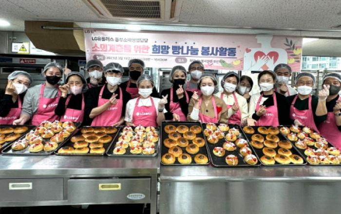 LG유플러스는 소외계층 이웃에게 따뜻한 마음을 전하기 위해 임직원이 직접 빵을 만들고 전달하는 'U+희망나눔 빵 만들기' 사회공헌 활동을 전개한다고 16일 밝혔다. 올해 처음 시행되는 빵 만들기 나눔 활동을 위해 LG유플러스는 대한적십자사와 업무협약을 체결했다.