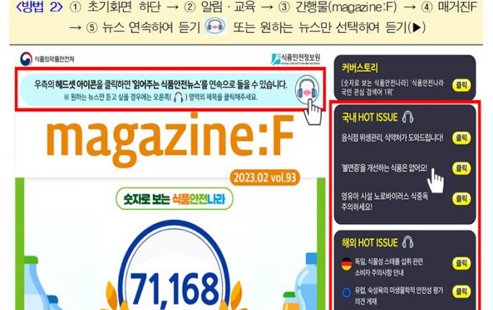 식품의약품안전처가 읽기에 어려움이 있는 사용자에게 식품안전뉴스 정보를 문자를 음성 콘텐츠로 변환해 지원한다. 또한 식품 안전 데이터 등 주요 정보는 애니매이션 이미지(GIF) 기술을 활용해 쉽게 이해할 수 있도록 제작해 제공한다. 식약처와 식품안전정보원은 노