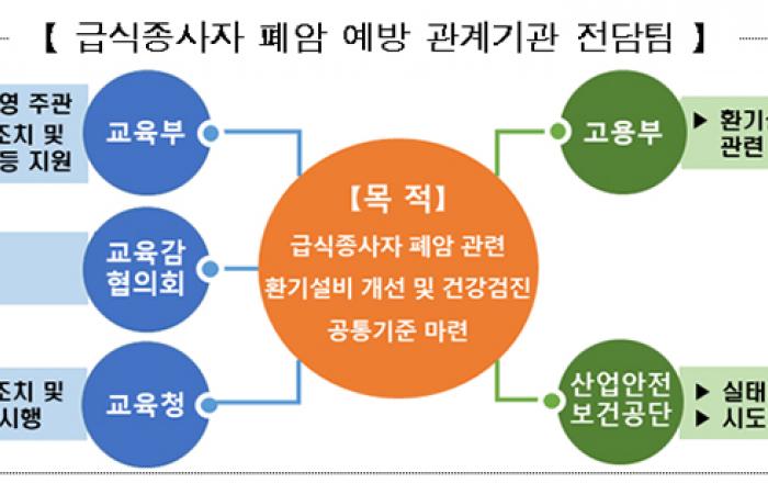 학교 급식 종사자의 건강을 보호하고 안전한 조리실 환경 조성을 위해 급식 조리실 내 환기 설비가 개선된다. 또 발암물질을 유발하는 요리의 경우 오븐 사용으로 전환하는 등 조리방법 개선도 이뤄진다. 교육부는 이 같은 내용의 ‘급식실 조리환경 개