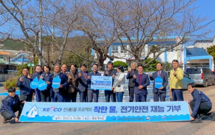 한국전기안전공사가 계속된 가뭄으로 어려움을 겪고 있는 남부 지역주민들을 위해 행정안전부와 손잡고 '먹는 물 기부 릴레이'에 참여했다. 박지현 사장을 비롯한 공사 임직원들은 14일, 경남 통영 욕지도를 찾아 지역주민들에게 생수 11,100병(2L)을 직접 전달하고 도