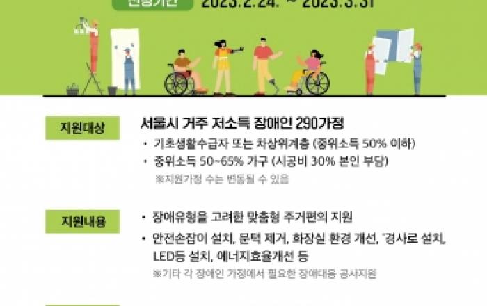 서울 금천구는 저소득 장애인에게 집수리 서비스를 제공하는 '저소득 장애인 주거편의 지원사업'을 실시한다고 밝혔다. 저소득 장애인 주거편의 지원사업은 가정 내(외) 일상생활과 활동에 불편함을 겪는 장애인에게 장애 특성별 맞춤형 공간복지 지원을 통해 편리하고 안전한 주