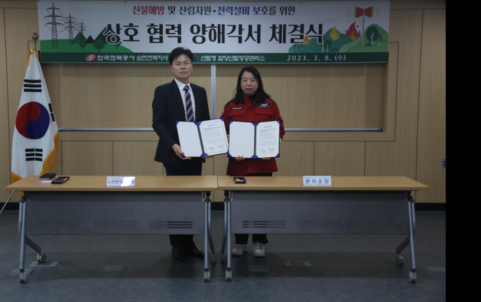 산림청 함양산림항공관리소와 한국전력공사 순천지사는 8일 산림자원과 전력 설비 및 국가기관 시설을 산불 등 자연 재난으로부터 보호하기 위한 업무협약을 함양산림항공관리소 회의실에서 체결했다고 밝혔다. 이번 협약을 통해 양 기관은 산불방지 활동에 적극 참여하고, 항공