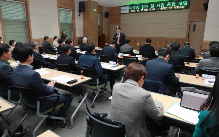 충북도는 3월 7일 15시에 충북연구원 대회의실에서 「미호강 맑은물 사업」 통합포럼 회의를 개최했다. 미호강 협력포럼은 2022년 10월 27일 민?관이 함께 발족하고 그동안 미호강 맑은물 사업의 기본계획 수립을 위한 정책발굴, 주요 쟁점 및 발전 방향성을 논의해왔