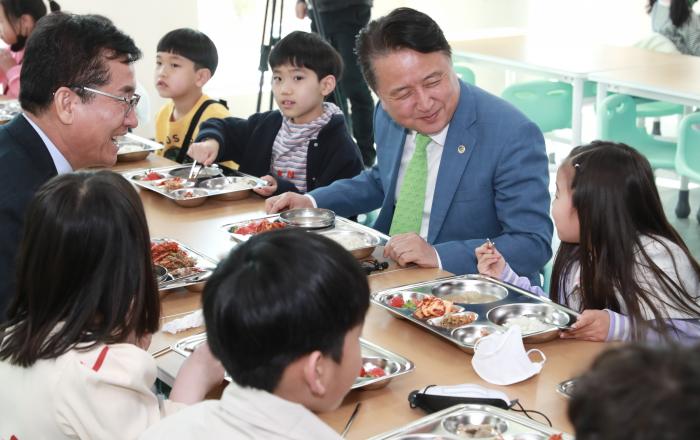 김영환 충북도지사와 윤건영 충북교육감은 6일(월) 오전 청주 방서동에 위치한 단재초등학교 급식 현장을 방문했다. 이는 양 기관이 지난해 10월 무상급식 협상 이후 첫 공동 방문으로 전국 도단위 최고 수준으로 인상된 무상급식 식품비 단가가 적용되는 신학기에 맞춘 소