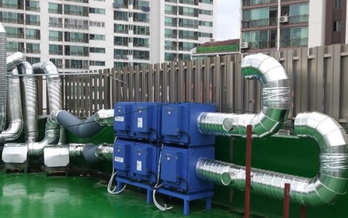 직화구이 음식점 건물옥상에 설치된 생활악취 저감시설(전기집진기) 서울시가 시민들의 생활악취 불편을 해소하기 위해 소규모 음식점 등을 대상으로 생활악취저감시설(이하 ‘저감시설’) 지원사업을 추진한다. 시는 해마다 증가하는 주택가의 생활악취 민원을 해소