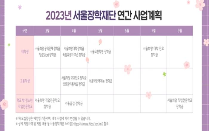 서울장학재단 연간 사업 계획 서울장학재단은 올해 서울 소재 학교 재학생 또는 본인이 서울시민이거나 서울시민의 가족(자녀 또는 배우자)이면서 타 시도 대학교에 재학중인 학생 등에서 총 4,379명을 선발, 87억 원 규모의 장학금을 지원한다. 재단은 지난