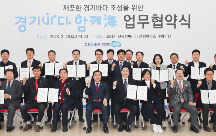 경기주택도시공사 등 경기도 산하 11개 공공기관 직원들이 안산 탄도항, 김포 대명항 등 도내 해안가에서 해양쓰레기를 수거하며 깨끗한 경기바다 조성에 나선다. 오병권 경기도 행정1부지사와 화성·안산·평택·시흥·김포시 등 연안