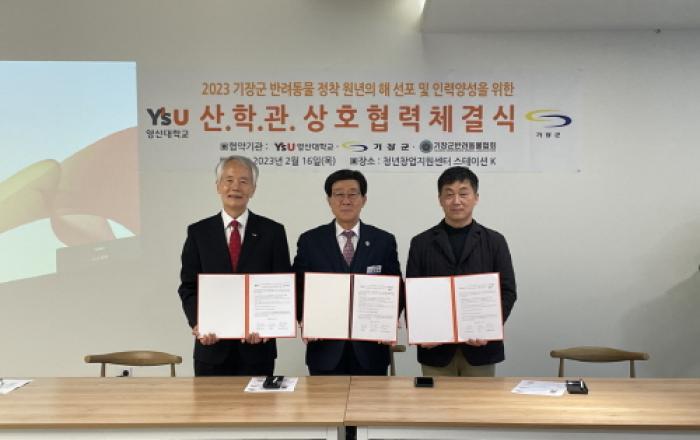 부산 기장군은 이달 16일 영산대학교 및 기장군반려동물협회와 협약식을 가지며, 기장군 반려동물 문화 정착을 위한 공동협력에 나선다고 밝혔다. 이날 협약식에서는 정종복 기장군수, 부구욱 영산대학교 총장, 곽일주 기장군반려동물협회장이 참석해 ▲인적자원 및 정보 공유 지