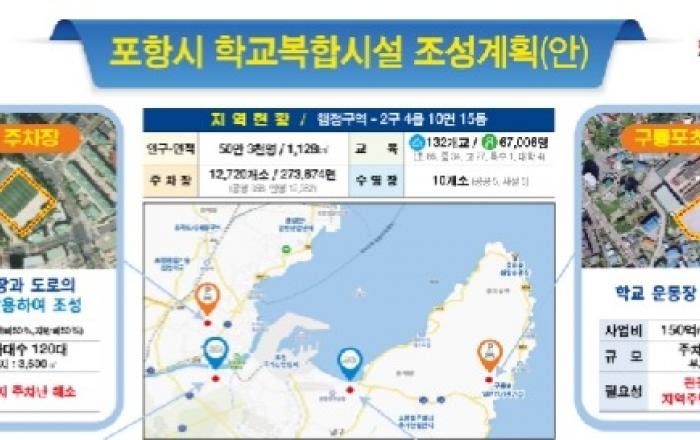 경북 포항시와 울릉군이 경북지역의 학교복합시설 선도사업지역으로 선정됐다. 교육부는 3일 포항고등학교에서 김병욱 국회의원, 경상북도청, 경상북도교육청 등과 함께 경북지역 학교복합시설 사업의 원활한 추진과 활성화를 지원하기 위한 업무협약(MOU)을 체결했다고 밝혔다.