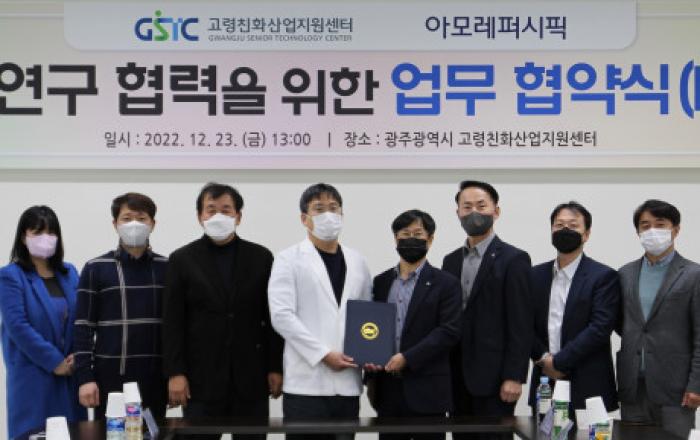 아모레퍼시픽이 고령친화산업지원센터(Gwangju Senior Technology Center, 이하 GSTC)와 건강장수 분야 상호 연구 협력을 위한 업무 협약(MOU)을 체결했다. 23일 광주광역시 남구 GSTC에서 열린 협약식에는 아모레퍼시픽 박영호 R&I센