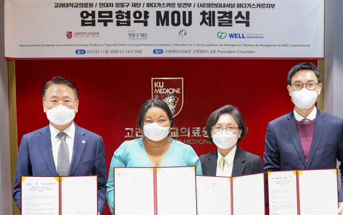 11월 30일 고려대의료원에서 ‘마다가스카르 온드림 실명예방’ 협약식이 진행되었다. 현대차 정몽구 재단(이사장 권오규)은 지난 30일 고려대의료원에서 마다가스카르 의료 지원을 위해 고려대의료원, 마다가스카르 보건부, 웰인터내셔널과 ‘온드림 실명예방 사업’ 협약식을 진행