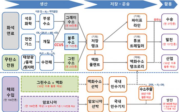 정부가 세계 3번째로 이산화탄소를 해상 주입에 성공한 경험을 바탕으로 2050년 연 1500만톤의 세계 최대 규모 이산화탄소 저장소 운영을 목표로 내세웠다. 또 수소 액화 기술을 국산화하는 등 수소공급을 늘려 수소 생태계를 완성하는 동시에 무탄소 전력공급을 확대하