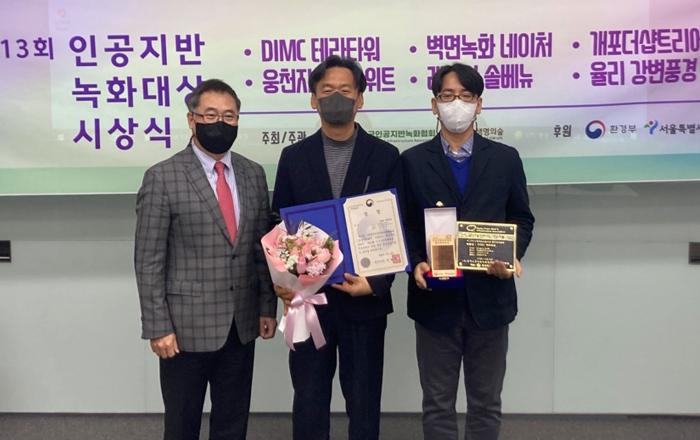 현대엔지니어링이 인공지반 녹화 등 건축조경 분야에서의 기술력과 성과를 인정받아, 잇단 수상의 쾌거를 이뤘다고 21일(월) 밝혔다.현대엔지니어링은 환경부와 (사)한국인공지반녹화협회에서 주관하는 ‘제13회 인공지반녹화대상’ 기술혁신 분야에 'DIMC 테라타워'를 출품해 환