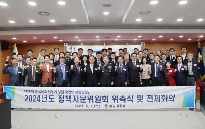 해양경찰청은 본청 대회의실에서 청장 등 지휘부와 정책자문위원(35명)이 참석한 가운데 ‘2024년 해양경찰청 정책자문위원회 전체회의’를 1일 개최했다. 해양경찰은 작년 4월 제3기 정책자문위원 52명을 위촉했으며, 위원들은 해양경찰 업무인 내부역량·해양주권․해양안전