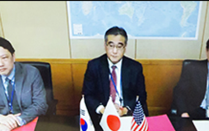 한국·미국·일본이 3자 안보회의에서 북한의 핵·미사일 개발과 러북간 무기거래 등 유엔안보리결의 위반 행위를 규탄했다. 국방부는 조창래 국방부 국방정책실장, 일라이 래트너 미합중국 국방부 인도태평양안보차관보, 카노 코지 일본 방위성 방위정책국장이 각각 수석대표로