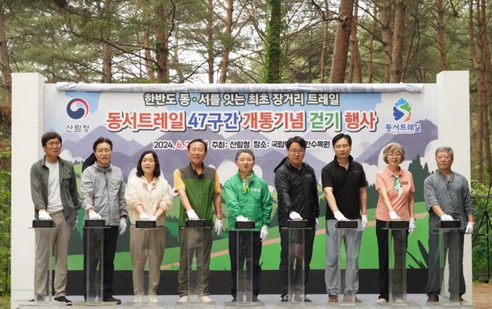 산림청은 경상북도 봉화군에 위치한 동서트레일 47구간에서 500여 명의 참가자와 함께 개통기념 걷기행사를 성공적으로 개최했다고 22일 밝혔다. 동서트레일은 충남 태안군 안면도에서 경북 울진군 망향정까지 국토를 동·서로 횡단하는 849km 숲길로