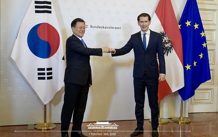 오스트리아를 국빈 방문 중인 문재인 대통령은 14일(현지시간) 세바스티안 쿠르츠 오스트리아 총리와 회담을 갖고 ▲양국 관계 발전 및 실질 협력 증진 방안 ▲코로나19·기후변화 등 글로벌 현안 ▲한반도 정세 등에 대해 심도 있게 논의했다. 문 대통령과 쿠르츠 총
