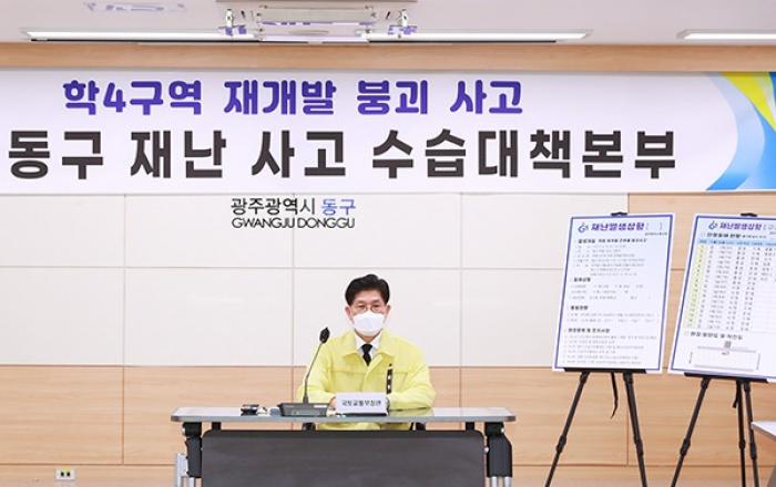노형욱 국토교통부 장관은 다수의 사상자가 발생한 광주광역시 철거건물 붕괴사고와 관련해 원인 규명, 재발 방지, 피해 보상을 약속했다.노형욱 장관은 이날 광주 동구청에서 중앙사고수습본부 관계기관 회의를 열고 이 같은 내용의 회의 결과를 발표했다.노 장관은 “건축물 철거공