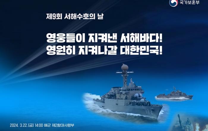 서해수호 55영웅의 숭고한 희생과 참전 장병들의 공헌을 추모하고 기억하기 위한 제9회 서해수호의 날 기념식이 22일 거행된다. 국가보훈부는 이날 오후 2시 해군 2함대사령부에서 서해수호 55영웅의 유가족과 참전 장병, 정부 주요 인사, 군 주요 직위자, 시민, 학생 등