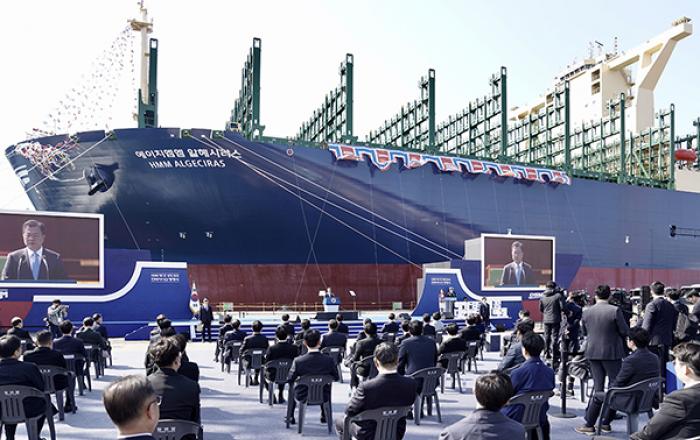 문재인 대통령은 9일 대우조선해양이 러시아에서 LNG(액화천연가스) 환적설비를 수주한