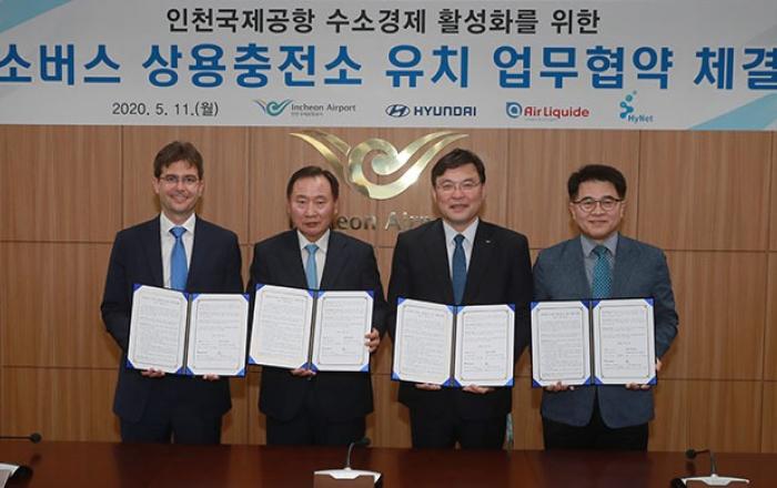 현대자동차가 인천국제공항공사, 에어리퀴드코리아, 수소에너지네트워크와 함께 수소경제 활성화 및 인천국제공항의 저탄소·친환경 공항 구현에 앞장선다.현대자동차는 지난 11일(월) 인천광역시 중구에 위치한 인천국제공항공사에서 구본환 인천국제공항공사 사장, 기욤 코테(Guill