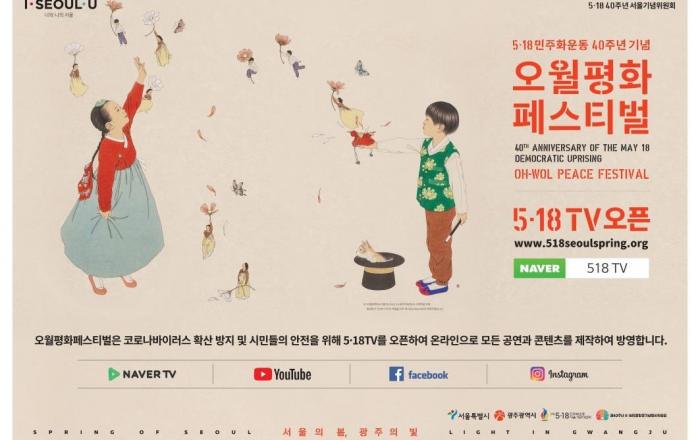 서울시가 광주시와 공동으로 5·18민주화운동 40주년을 기념하는 「오월평화페스티벌」을 ‘서울의 봄, 광주의 빛’이란 슬로건으로 개최한다. 무관객‧온라인 행사로 열어 국내는 물론 세계인이 공감하는 기념 행사를 만든다는 계획이다.시는 코로나19 확산 예방을 위해 생활