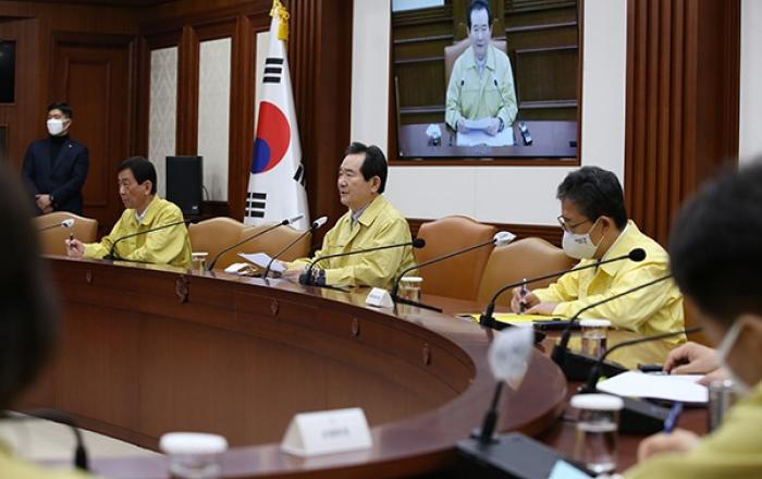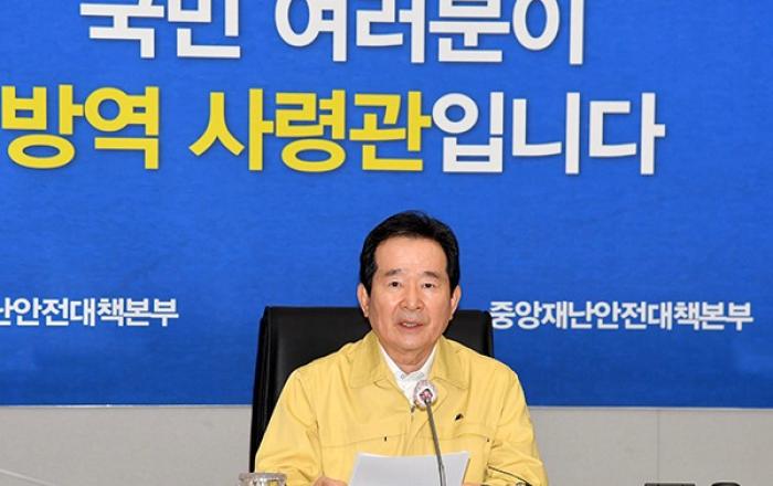 정세균 국무총리는 14일 코로나19 사태와 관련해 “관계부처와 지자체에서는 당장 신규 확진자가 줄었다고 방심하는 일 없이, 철저히 방역에 임해주기 바란다”고 주문했다.▲ 정세균 국무총리가 17일 정부서울청사에서 열린 중앙재난안전대책본부 회의를 주재하고 있다.정 총리는
