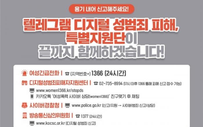 여성가족부가 ‘텔레그램 n번방 사건’등 디지털 성범죄 피해자 지원을 위한 특별지원단을 구성해 운영에 들어갔다.특별지원단은 지난달 24일 민·관이 함께 한 대책회의에서 ‘텔레그램 n번방 사건’ 피해자에 대한 신속하고 종합적인 지원 필요가 제기돼 마련됐다. 특별지원단에는