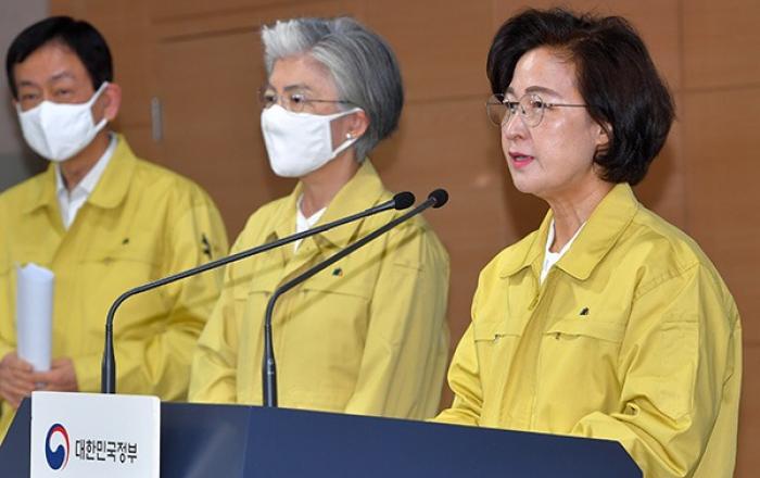 강경화 외교부 장관과 추미애 법무부 장관, 진영 행정안전부 장관은 제21대 국회의원 선거운동 기간 개시일인 2일 정부서울청사에서 안전한 투표환경 조성과 공명선거 실천을 위한 정부의 의지를 담은 ‘대국민 담화문’을 공동으로 발표했다.▲ 추미애 법무부 장관이 2일 서울 세