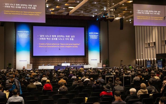 삼성전자는 18일 수원컨벤션센터에서 주주, 기관투자자, 김기남 대표이사(부회장), 김현석 대표이사(사장), 고동진 대표이사(사장) 등 400여 명이 참석한 가운데 ‘제51기 정기 주주총회’를 개최했다.이날 주주총회에서 △재무제표 승인, △사내이사 선임, △이사 보수한도