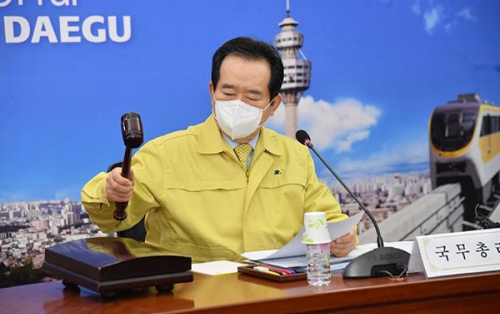 정세균 국무총리는 4일 마스크 공급과 관련해 “공적인 개입이 더 필요하면 배급제에 준하는 방안을 마련하겠다”고 밝혔다.코로나19 사태 수습을 위해 중앙재난안전대책본부 본부장으로 9일째 대구에 머물고 있는 정 총리는 이날 대구시청에서 기자간담회를 열고 “마스크 공적 유통