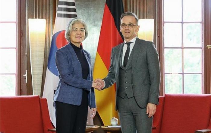 강경화 외교부 장관은 25일(현지시간) 오후 독일 베를린에서 열린 ‘제2차 스톡홀름 이니셔티브 장관급 회의’에 참석해 하이코 마스 독일 외교장관과 회담을 갖고 코로나바이러스감염증-19(코로나19) 대응과 P4G 정상회의, 한반도 정세 등에 대해 논의했다.먼저 강 장관은