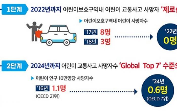 정부가 어린이 보호구역 제도의 정책 기조를 ‘어린이 보호 최우선’으로 전환하면서 어린이 교통사고 사전예방에 집중한다.이를 위해 2022년까지 전국 어린이 보호구역에 무인교통단속장비와 신호등 설치를 완료하고, 운전자와 보행자의 시야를 가리는 불법 노상주차장은 올해 말까지