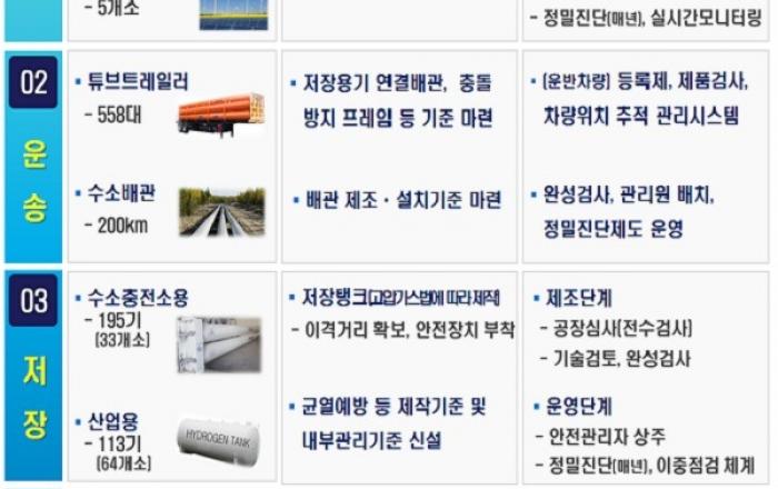정부가 수소 생산부터 활용까지 전 주기에 걸쳐 안전관리에 필요한 사항을 촘촘하게 점검할 수 있도록 수소 안전관리체계를 전면 개편하기로 했다.특히 수소충전소, 수소생산기지, 연료전지 시설 등 핵심 시설을 중점적으로 관리하고 지속가능한 안전생태계를 조성하기 위해 기술개발과