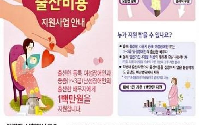 2012년부터 장애인 가구의 출산 시 태아 1인 기준 100만원을 지원하는 출산 비용 지원 사업을 시행 중인 서울시가 올해도 경제적 부담 경감에 앞장선다.지난해 1월 1일 이후 아이를 출산한 장애인 가정이 지원받을 수 있는 이번 사업은 임신 기간 4개월 이상의 태아를