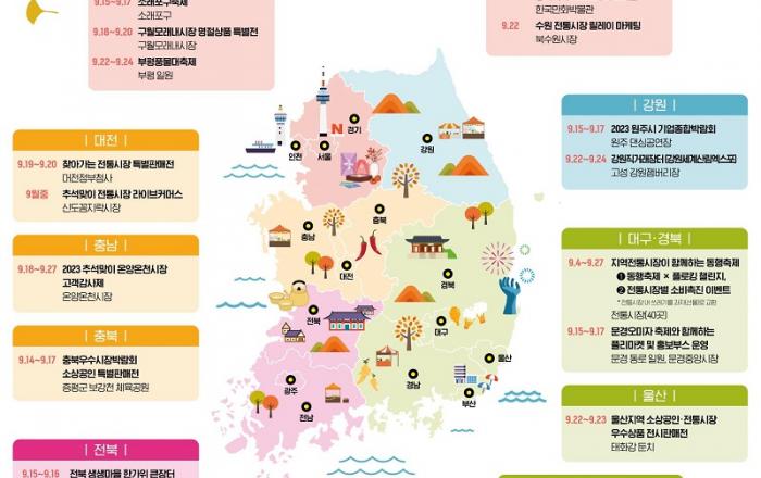 중소벤처기업부는 전통시장 국내 최대 행사인 2023 전국우수시장박람회, ‘K-마켓 페어’를 오는 5일부터 8일까지 인천에서 개최한다고 4일 밝혔다. 올해 제19회를 맞는 전국우수시장박람회는 전국 우수 전통시장의 상품을 전시·판매하는 행사로, 2004년부터 해마다 개최하