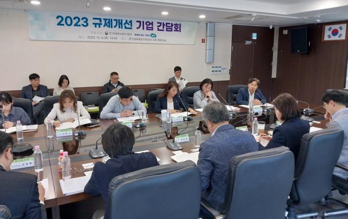 경기도는 중소기업 성장에 걸림돌이 되는 불합리한 규제를 발굴·개선하기 위해 북동부 및 서북부권 시군을 대상으로 6일 양주시 소재 경기섬유종합지원센터에서 규제개선 기업간담회를 열었다. 이날 간담회에는 경기도, 경기지방중소벤처기업청, 안산시, 부천