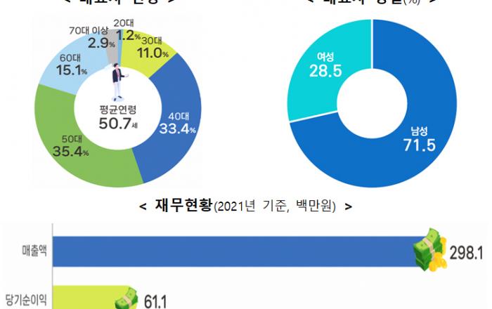 지난 2020년 기준 국내 ‘1인 창조기업’ 수는 91만 7365개, 이들의 평균 매출액은 2억 9800만원으로 조사됐다. 중소벤처기업부는 이 같은 내용의 ‘2022년 1인 창조기업 실태조사’ 결과를 9일 발표했다.