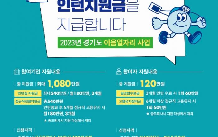 경기도와 경기도일자리재단이 베이비부머의 안정적 일자리 창출을 위한 ‘경기도 이음 일자리 사업’을 추진하기로 하고 참여기업을 3월 20일까지 모집한다. ‘경기도 이음 일자리 사업’은 구인난을 겪고 있는 중소기업과 사회적 기업에
