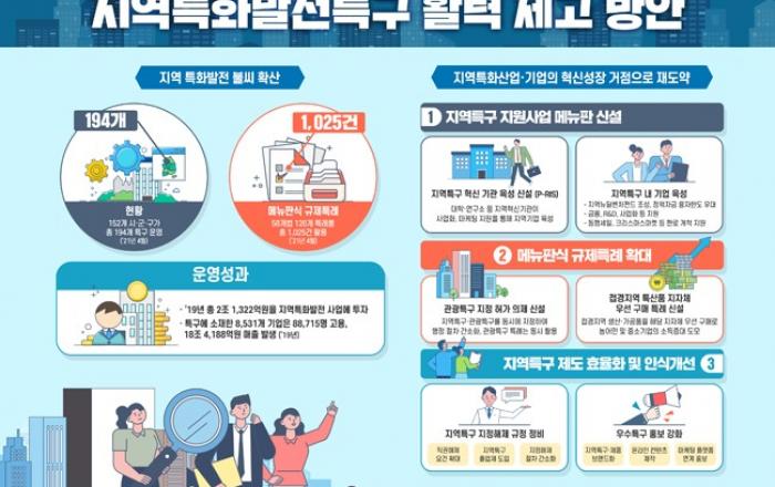 지역특화발전특구에 활력을 불어넣기 위해 특구별로 연고 중소기업을 육성하고 지역특구와 관광특구의 동시 지정을 허용하는 방안이 추진된다.중소벤처기업부는 20일 제50차 지역특화발전특구위원회에서 이 같은 내용의 ‘지역특화발전특구(이하 지역특구) 활력 제고 방안’을