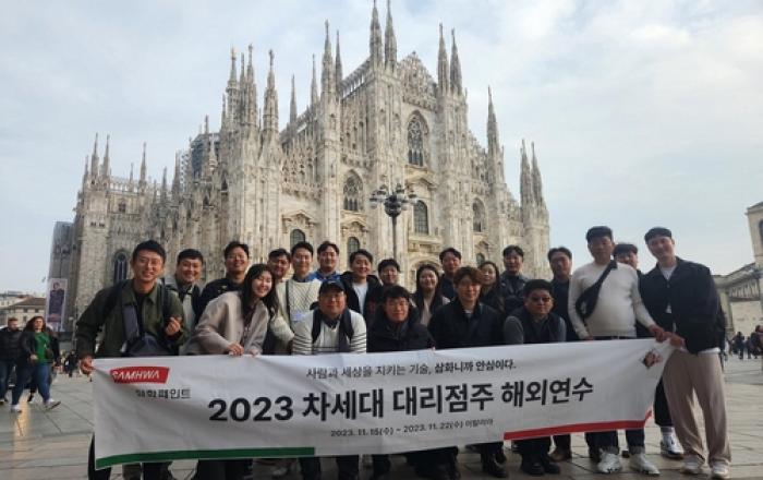 삼화페인트공업㈜은 11월 15일(수)부터 11월 22일(수)까지 8일간 이탈리아에서 '삼화페인트 2023 차세대 대리점주 해외연수'를 진행한다. 차세대 대리점주 해외연수는 대리점과 본사간 상생과 발전을 도모하고 신제품 소개 및 국제 건축 자재 트렌드를 공유하기 위해