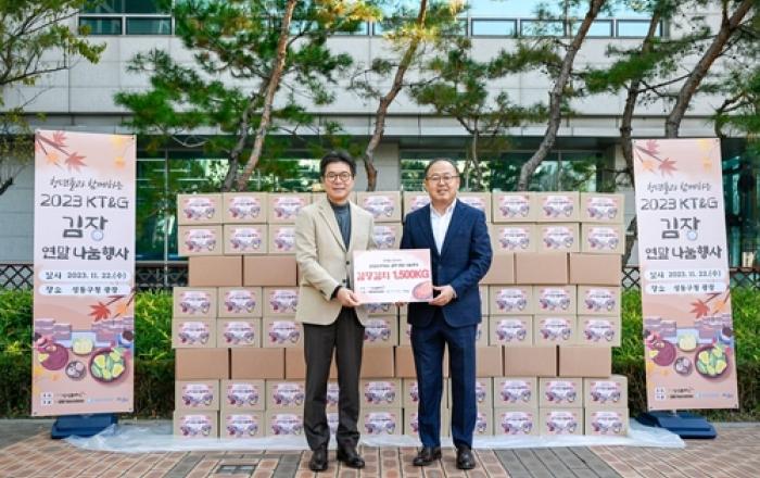 KT&G가 소외계층의 겨울나기를 돕기 위해 지역 곳곳에서 '연말 김장 나눔행사'를 진행한다. KT&G는 지난 22일 청년창업 전용 공간 'KT&G 상상플래닛'이 위치한 서울시 성동구에서 '연말 김장 나눔행사'를 열고 김장 봉사와 전달식을 진행했다. 이날 행사에