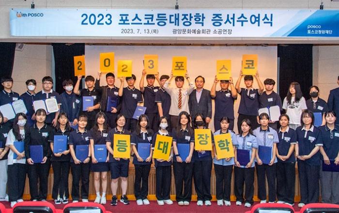 포스코청암재단은 지난 13일 광양 문화예술회관과 14일 포항 포스텍 체인지업그라운드에서 각각 ‘2023 포스코등대장학생 증서수여식’을 개최하고, 선발된 포항·광양지역 고등학생 215명에게 증서를 수여했다. 포스코등대장학사업은 어려운 환경에서도 좋은 성적을 유지하고,