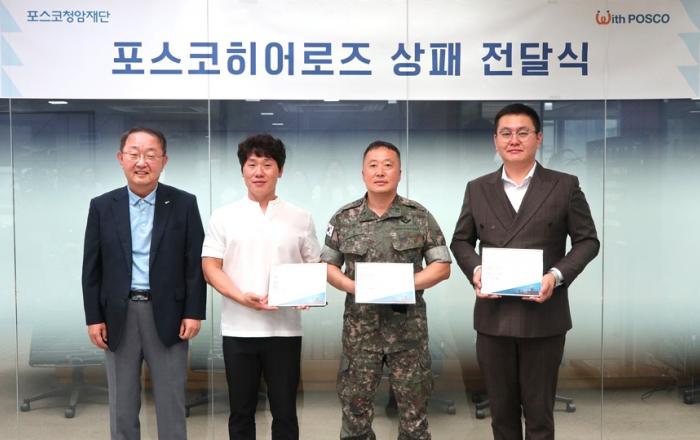 포스코청암재단이 화재 현장에 뛰어들어가 주민을 구하고 초기 진화로 더 큰 화재를 막은 시민 조인수(39)씨, 최형규 상사(45), 이도현(40)씨를 포스코히어로즈로 선정하고 6월 8일 포스코청암재단에서 상패와 자녀 장학금을 전달했다. 인천에서 카센터를 운영하는 조인